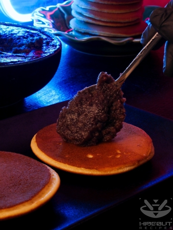 • Distribute the red bean paste to half your pancakes using a spoon. Put more in the middle and less around the edges.